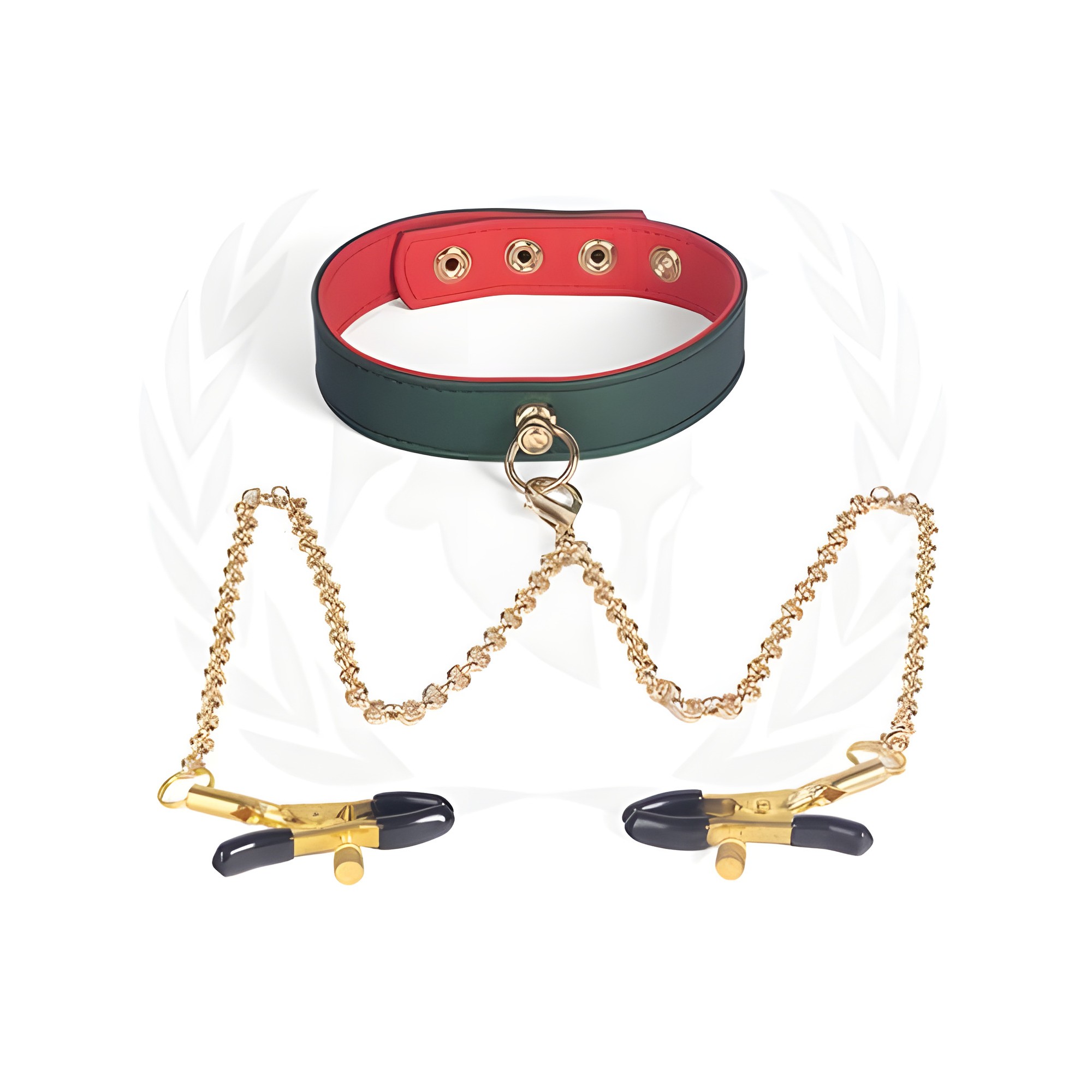 Explore new sensations with the Spartacus PU Collar featuring nipple clamps.