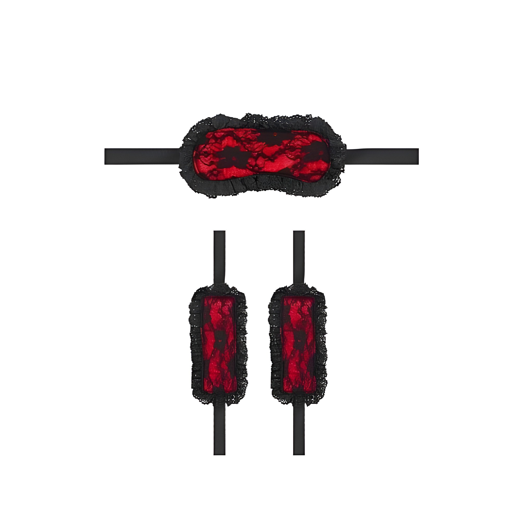 This kit includes essential items for a playful experience, featuring a lace mask and wrist cuffs to enhance your intimate moments.