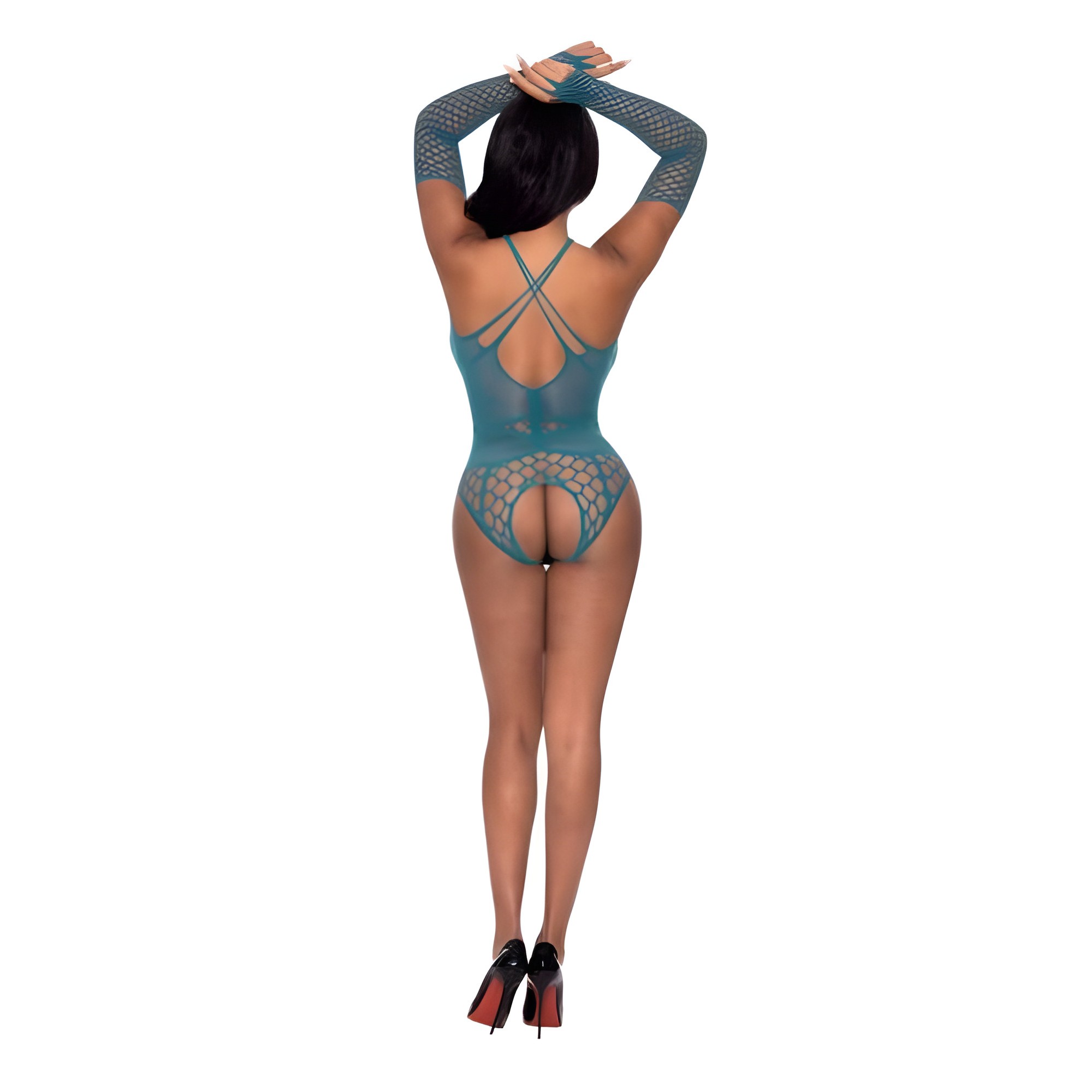 Embrace your curves with the Seamless Long Sleeve Teddy! This stunning piece features a high neck cross strap design and a flattering crotchless cutout, perfect for showcasing your body.