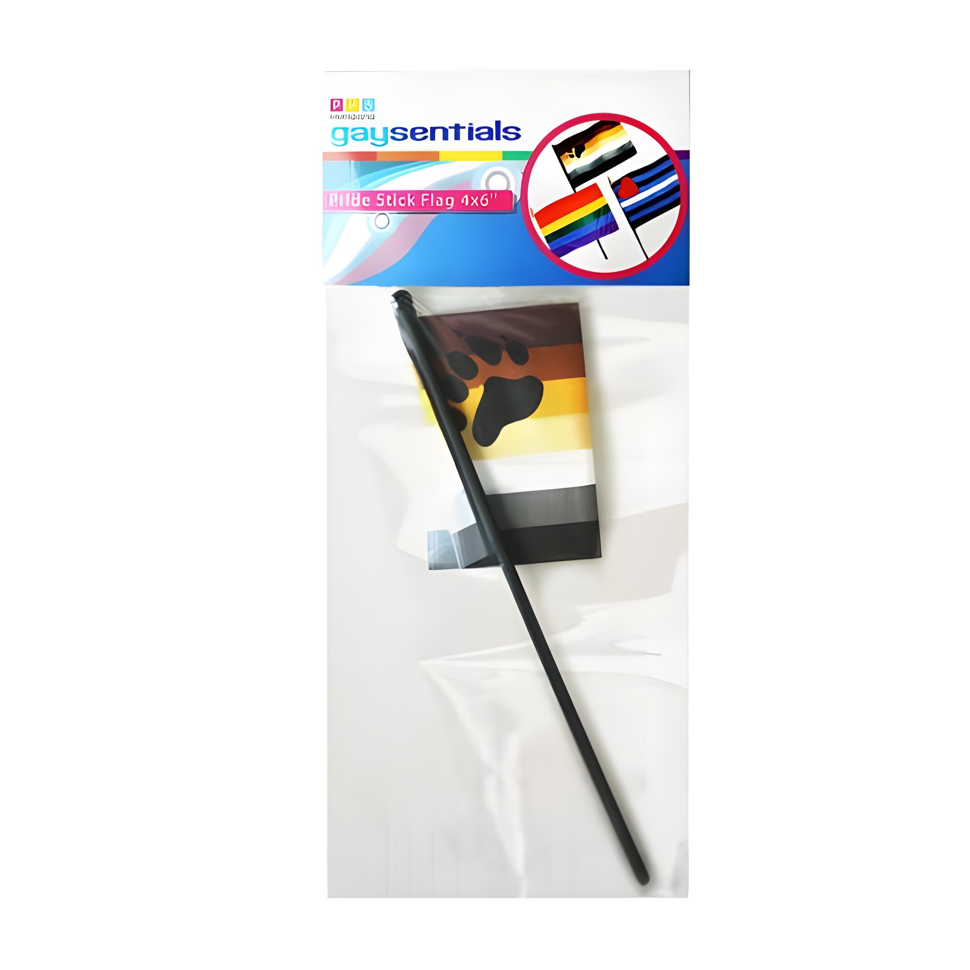 ¡Muestra tu orgullo con la bandera de mano Bear Pride de Gaysentials! Perfecta para desfiles, esta bandera compacta mide 4 x 6 pulgadas y cuenta con un extremo decorativo para un estilo adicional.